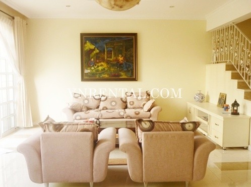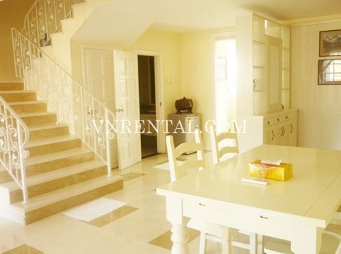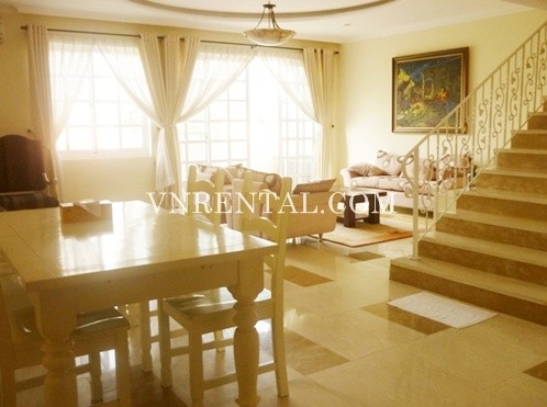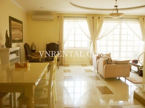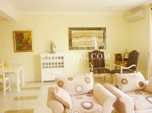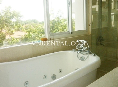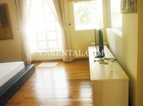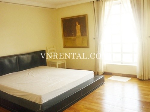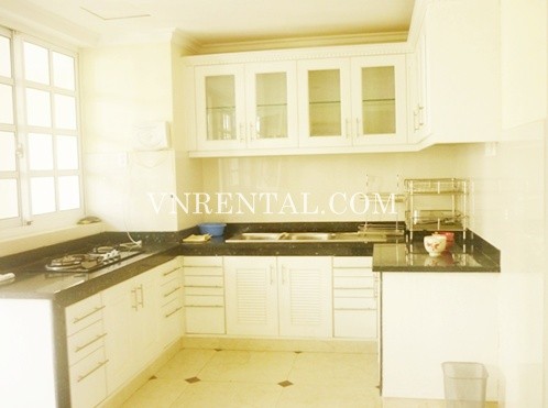Apartment for rent in Phu My Hung area, District 7, HCM City, Viet Nam. The apartment consists of 4 bedrooms, 3 bathrooms, area 204 sqm, balcony, fully furnished and equipment in the kitchen.