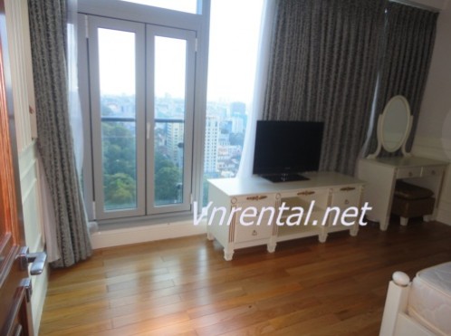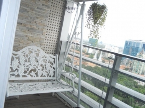 The apartment has 2bedrooms and 2bathroom with area of 105m2, this stylist apartment will give you a confortable living with all high quality furniture. This unit base on high floor will give you a great view of Saigon city, swimming pool and gym also base on the top floor of the buidling, this is one of the most convenience apartment in District 1.
