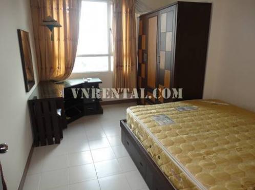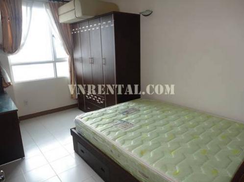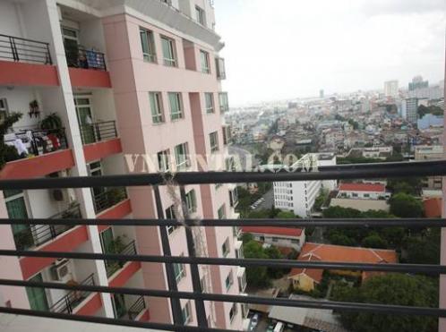 Floor area 73 m2, 2 bed rooms, 1 living room,1 bathroom, kitchen, hot water, very nice balcony…. Fully furnished, elevator, security 24/7. 50% residents are foreigners . 5 minutes ride by motorbike to down town district 1 Ho Chi Minh city. Spacious car and mortorbike parking area.