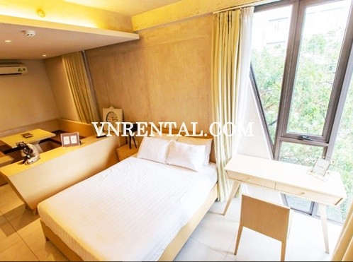 Adorable serviced apartment for rent in Nguyen Van Thu street, district 1, Ho Chi Minh, Vietnam. This serviced apartment is located in an extremely convenient location. It is only 8 minutes walk to markets, convenience store, coffee shop and restaurant .. easily come to District 1, District 3, Binh Thanh District.