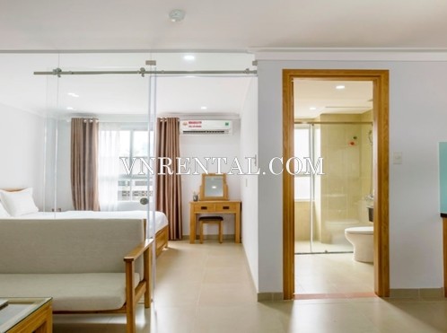 Airy 1 bedroom serviced apartment for rent in Binh Thanh district, HCMC, Vietnam. The serviced apartment for rent is fully furnished with well-furniture, cleverly design and modern facilities. each room has many window, it will brings you airy space and relax feeling, when you come back the home.