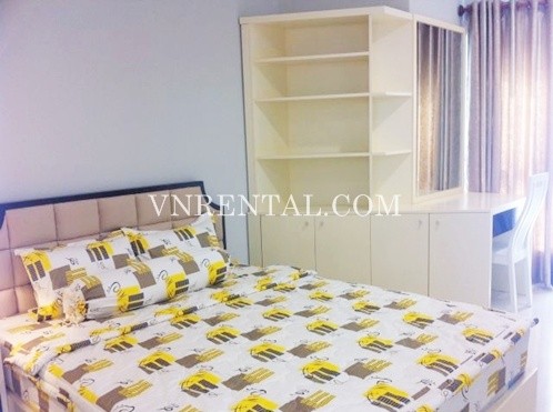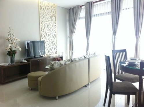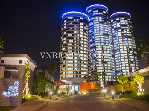 Apartment for rent in City Garden Building, Ngo Tat To Street, Binh Thanh District, HCM City. Apartment includes 2 bedrooms, 2 bathrooms, 117 sqm, city view, fully furnished.