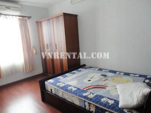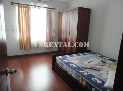 A good Apartment - 11th floor, 2 bedrooms with wooden floor, 104m2, fully furnished: air-cons, sofa, LCD TV, fridge...In this building, there is a big supermarket, book store...on the ground floor; Good security 24/24 with resident card, separate with supermarket and the shop...