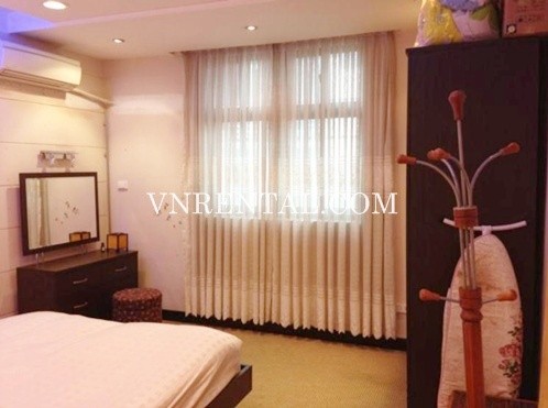 Apartment for rent in District 5, HCM City, Vietnam. Apartment includes 2 bedrooms, 1 bathroom, 1 kitchen, usable area: 76 sqm, wooden floor, fully furnished.