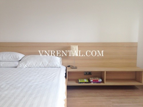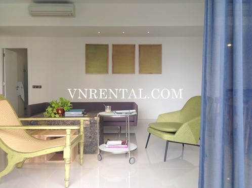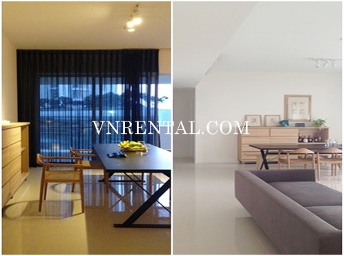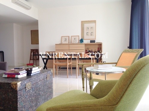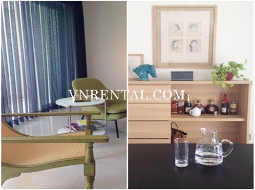 Furnished apartment for rent with 3 bedrooms, 3 bathrooms, living room and kitchen, 171 sqm, high floor, simple style by wood and some unit furnitures, interior is elegant. Especially, it has pool view and garden view from living room.