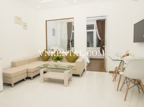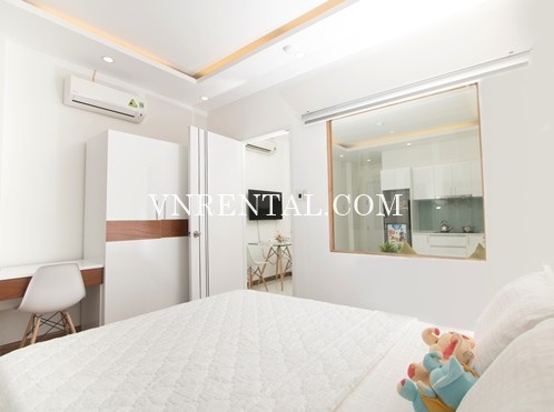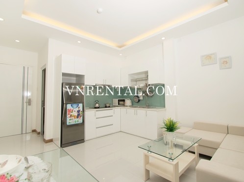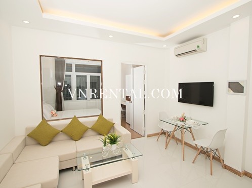 Brand new and beautiful 1 bedroom serviced apartment for rent on Nguyen Trai Street, District 1, Ho Chi Minh City, Vietnam. The building is located in a very convenient area, 300m away from Nguyen Thai Binh market, and 23/9 Park, 500m away from Coop Mart, 1.5km away from Ben Thanh market and California Yoga & Fitness... offering cozy and home-like atmosphere both inside and outside the apartments.