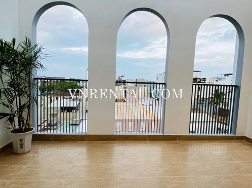 This serviced apartment for rent located closely to the beach of Da Nang city. The serviced apartment for rent comes fully furnished with a really large balcony, elevator and swimming pool. Located in quite area with easy access to many convenience stores, coffee shop, western and local restaurants around, will make tenants of this serviced apartment for rent satified.