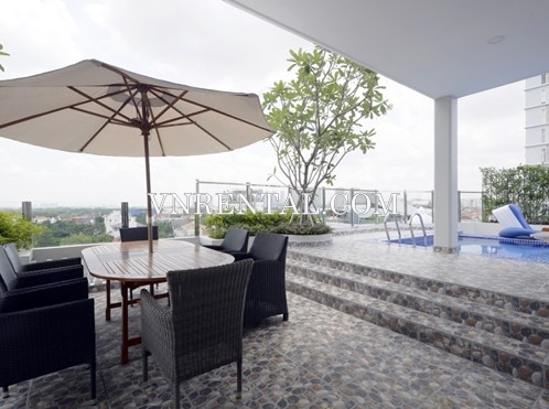 Comfortable serviced apartment for rent in Thao Dien, District 2, HCMC. This 2 bedroom service apartment for rent has gym, pool, good location, nice furniture…Which is worthy of consideration.
