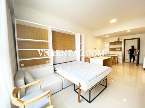 Charming studio apartment for rent in Phu Nhuan district, HCMC. Apartment has 1 bedroom, 1 bathroom, area floor 44sqm. Tenants will enjoy with amenities that include a pool, fitness center and on-site resident wine bar and terrace. Apartment also near Tan Son Nhat airport, its very suitable for peoples whose work at airport or areas nearby.