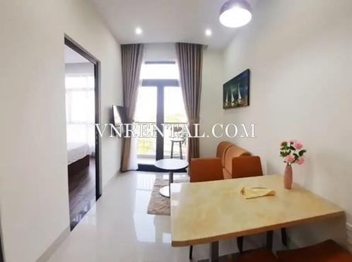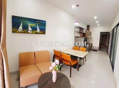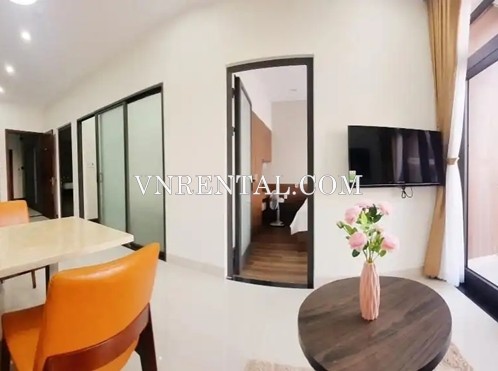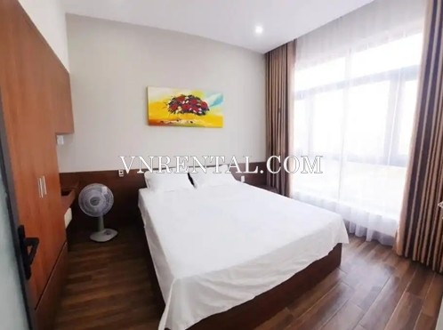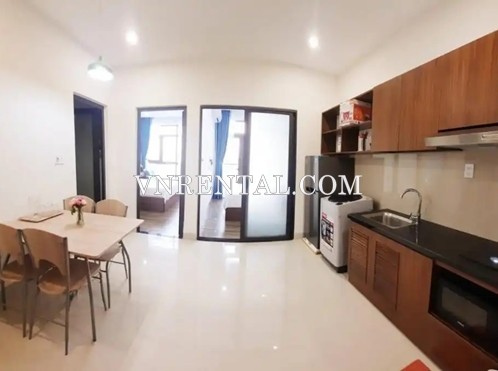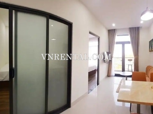 This service apartment for rent located in Da Nang city, Vietnam, close to the beach. The serviced apartment for rent is perfect for those wishing to stay in a quiet and secure area. At the same time, you can access the bustling tourist area with just a few minutes walking. The total area of the service apartment for rent is 55 square meters with 2 bedrooms, a private bathroom, and a well-equipped kitchenette.