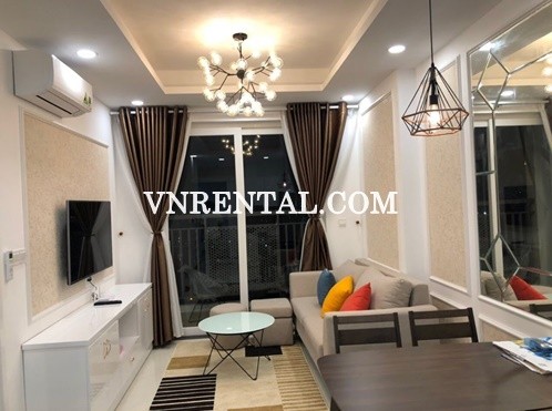 Classic apartment for rent in Saigon Mia district 7, HCMC. Apartment is located in Trung Son area, close to Nguyen Van Linh bridge and RMIT university. Apartment area 69sqm, with 2 bedrooms, 2 bathroom, living room and kitchen space. Sofa and dinning table also equipped in living room, and all interiors are equipped fully by landlord. Apartment with elegant design, brings comfortable and convenience life to tenants. Full facilities: convenience store, supermarket, shopping center, gym, swimming pool, park, restaurants, coffee, ..