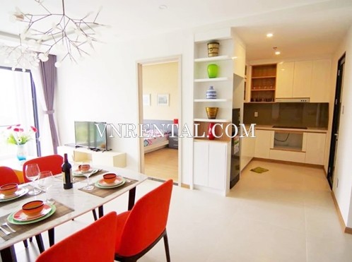 Colourful apartment for rent in district 2, New City Thu Thiem, Ho Chi Minh city. With prime location, the apartment for rent nearby variety of restaurants, coffees, convenience stores, pharmacies,... really convenient for tenants. The apartment for rent has 2 bedrooms, 1 bathroom in area of 60 sqm, only $640 per month.