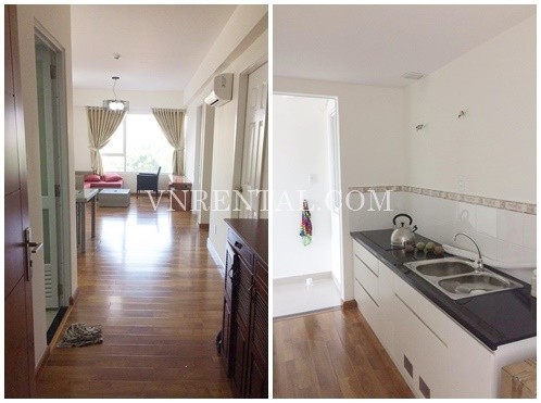 Beautiful wooden floor 2 bedroom apartment for rent in Ehome 5 building, Tran Trong Cung street, District 7, Ho Chi Minh city. Located near Phu My bridge and Sai Gon river, also close to Phu My Hung area and district 2. Suitable for foreigners who work in Tan Thuan industrial park, Nha Be area and district 2.