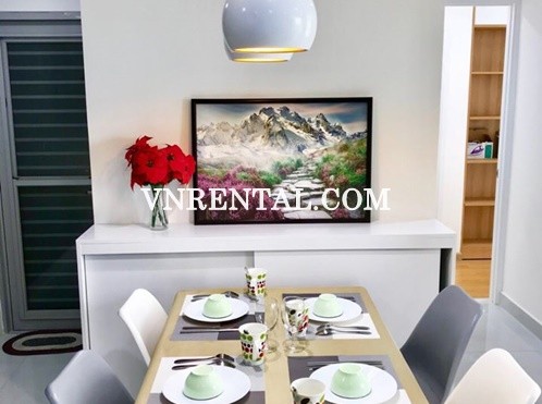 Europe style apartment for rent is located in Scenic Valley 1 district 7, HCMC. Apartment includes 2 bedroom, 2 bathroom, widely living room and open kitchen space, total apartment area 71sqm. Furnitures and home appliances are equipped fully by host. ScenicAlley building is surrounded by many amenities as restaurants, coffee store, park, bank, hospital, Phu My Hung golf, Cresent Mall, convenience store..
