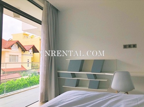 The serviced apartment for rent is located in Thao Dien, district 2, Ho Chi Minh city. This service apartment for rent has 1 bedrooms, 2 bathrooms, as well as a private kitchen, private washing machines. The apartment for rent comes fully furnished and well designed with really spacious area 90 sqm.