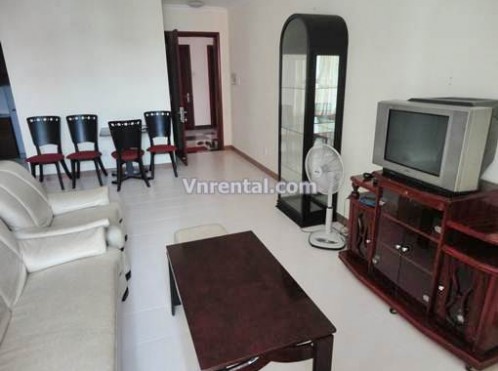 Floor area 73 m2. 2 bed rooms, living room,1 bathroom, kitchen, hot water, balcony…. Fully furnished, elevator, security 24/7. 50% residents are foreigners. 5 minutes ride by motorbike to down town District 1, Ho Chi Minh City. Spacious car and mortorbike parking area.