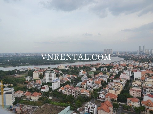 Luxury apartment for rent in Tropic Garden, Thao Dien area, District 2, Ho Chi Minh city. This apartment is 112sqm, on the 22th floor with 3 bedrooms, balcony, bathtub, bureau, stockroom, nice view Saigon river. This location is in high standing residence with swimming pool, gym, BBQ, billard, baby foot, ping pong , car and motorbike parking ... next to BIS, supermarket …