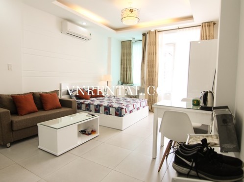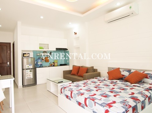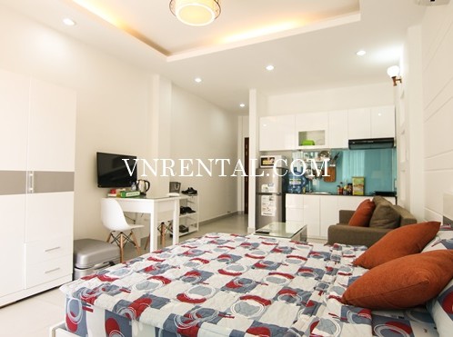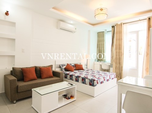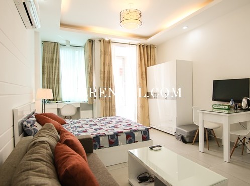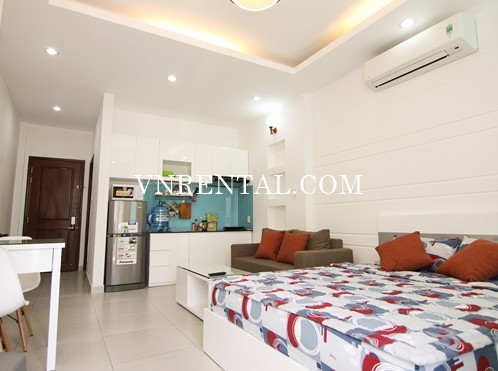 Bradnew and beautiful serviced apartment for rent in Nguyen Thai Binh ward, District 1, Ho Chi Minh city, Viet Nam. It is front unit with balcony. This location is very near Ben Thanh Market and easy to reach all services such as: restaurant, hotel, shops, park, supermarket, ... It is suitable for those who work in center of District 1 and areas around.