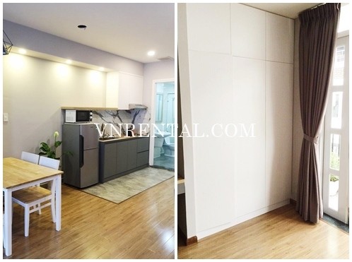 Clean and beautiful serviced apartment for rent on Nguyen Binh Khiem Street, District 1, Ho Chi Minh City, Vietnam. Situated in a very convenient location, near Saigon Zoo and many restaurants, convenient store, Diamond Plaza, clinic, high schools, universities... The apartment is fully furnished with modern furnitures and amenities, big basement for parking protected with anti-thief camera. There are 2 options for you in this building :