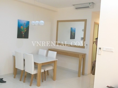Very nice Apartment for rent on the high floor in The Vista Building, An Phu Ward, District 2, HCM City, Vietnam. It is fully furnished with new and high glass furnitures, includes 2 bedrooms, 2 bathrooms, living room and kitchen. Take 5 minutes to Binh Thanh District, 10 minutes to center District 1.