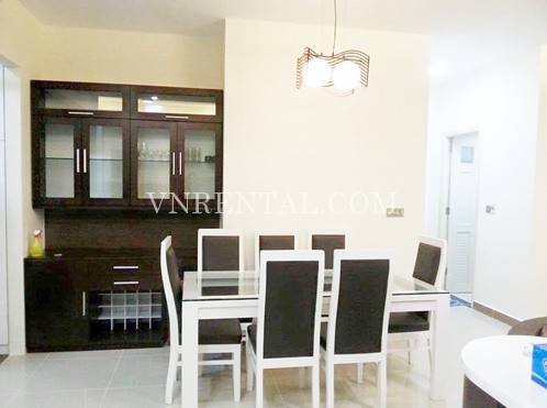 Cozy 2 bedroom apartment for rent with high floor view in Pearl Plaza Building, Binh Thanh district, HCM City, Vietnam. This building is just 2-3 km away from the Central Business District and conveniently accessible via the Hanoi Highway or upcoming new route through Saigon EastWest Highway. It is  fully furnished with new and high glass furnitures.