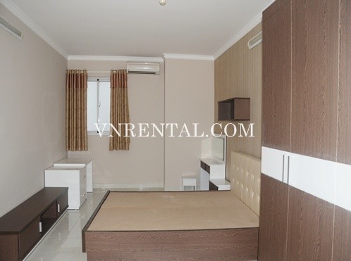 Apartment for rent in Central Garden Building, Vo Van Kiet street, District 1, HCM City, Vietnam. Apartment includes 3 bedrooms, 3 bathrooms, 137 sqm, fully furnished, city view.