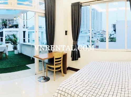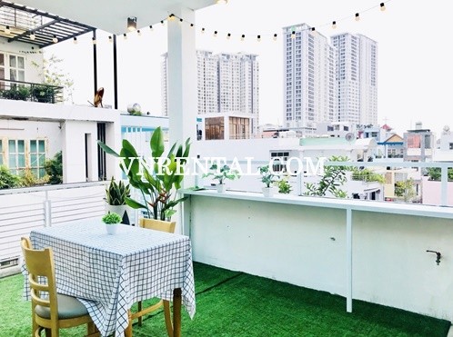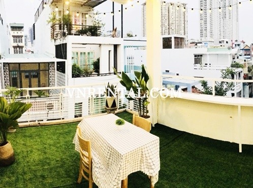 Penthouse room in district 1 for rent with 68m2 separate terrace, cozy and warm space just for you, but especially a romantic place for a cute couple. The serviced apartment for rent is location on Co Giang street, District 1, Ho Chi Minh, Viet Nam. The room with big kitchen attached, big bedroom, big rooftop, fully equipped with fridge, TV, Couch, desk, bed, fresh rooftop,...