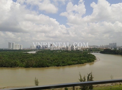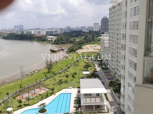 Riverside residence apartment for rent in Phu My Hung, District 7, HCM City, Vietnam. Usable 146 sqm. Apartment includes living room, kitchen, 3 bedrooms, 3 bathrooms, balcony with fully furnished and quality furniture. High floor and great view, great location for foreigner.