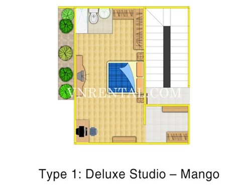 - A studio- 38sqm- from 1100USD to 1200USD per month.