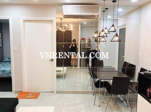 Simple apartment for rent in Sunrise City district 7, HCMC. Sunrise City apartment located in the center of district 7, adjacent to Phu My Hung urban. Apartment comprise 2 bedroom, 1 bathroom, kitchen space and living room, interiors equipped fully. Apartment on high floor brings clean air and natural light for tenants, total apartment area 59sqm. Full of high-end facilities 5-star standard such as gym, swimming pool, children's amusement park, restaurants, coffee, park, convenience store,..