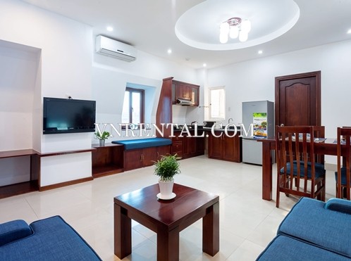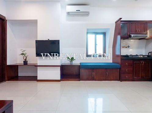 The 1 bedroom serviced apartment for rent has spacious living room, classical furniture, located in the heart of Thao Dien, District 2. Tenants completely can enjoy all the conveniences of being in center of District 2 which is nearly many shops, cafe, and restaurants if they stay in this serviced apartment for rent.