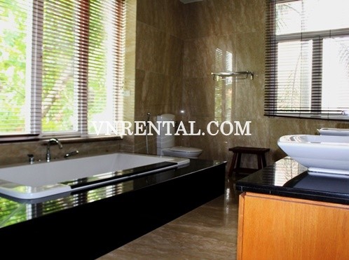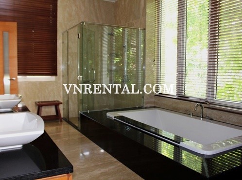 Luxury modern and spacious 5 bedroom villa for rent in An Phu Ward, District 2, Ho Chi Minh City, Viet Nam. This villa for rent in An Phu is 5 to 6 km away from the city center and can be reached easily via the Hanoi Highway or Avenue East - West. The linear design of the villa ensures good natural ventilation and large floor-to-ceiling windows fill the generously sized rooms with lots of daylights. Every resident can be ensured the full experience without leaving the comfort of their own homes to receive resort-like living environment.