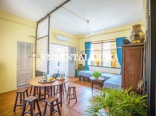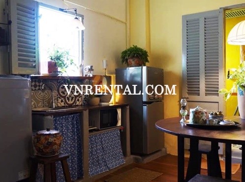 Vintage style serviced apartment for rent in Nguyen Thai Binh district 1, HCMC. This serviced apartment is fully furnished with usable area 55 sqm, includes 1 bedroom, 1 bathroom, open kitchen. Service apartment with nice decoration, bright and quiet, kindly neighboor, very suitable for living.
