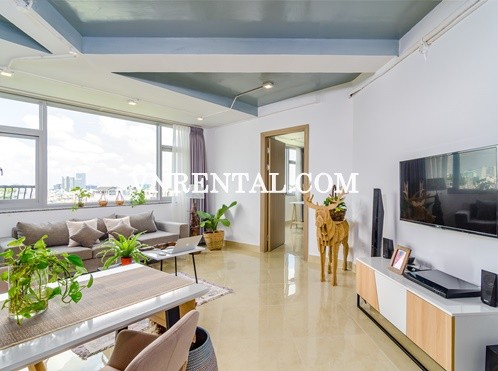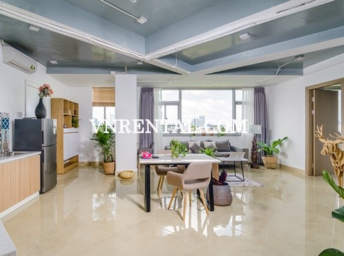 A wonderful penthouse on Truong Sa street, Phu Nhuan district. Along to the canal, the apartment has a very nice river view from the luxurious architecture of amazing spacious living room. It was decorated with modern furnished. You would love the sauna and pool on rooftop with a garden. This convenient location is easy to get CBD, restaurants, cafeterias, shopping mall and market.