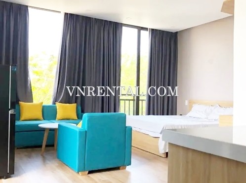 Brightly serviced apartment for rent in Ngu Hanh Son district, Da Nang city, Vietnam. This studio for rent is fully furnished with new modern design. each room is full of natural light with a balcony.