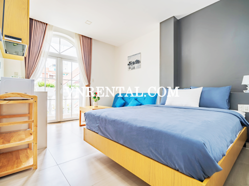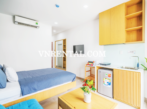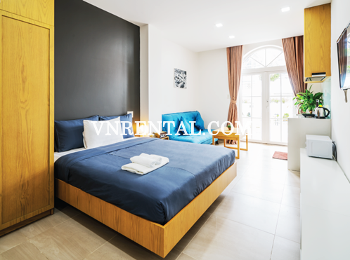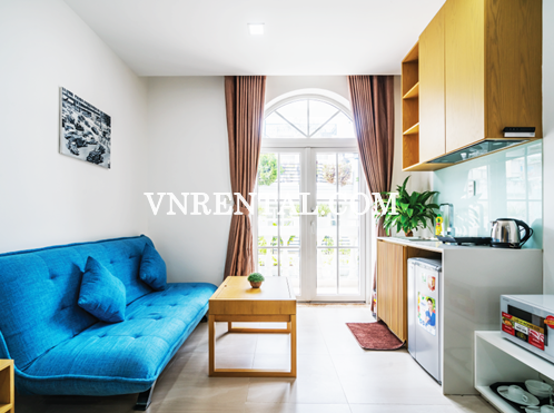 Studio serviced apartment for rent is located in District 3, HCMC, Vietnam. Very convenient location as it is very close to Ban Co Market, 10 minutes to get to downtown District 1. The surrounding area is full of commercial and office buildings as well as restaurants, cafe, shopping malls,... that would bring tenants satisfaction.