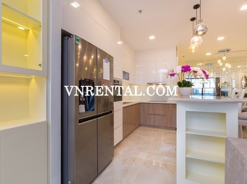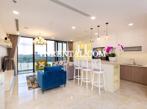Radiant beauty apartment for sale in Vinhomes Golden River district 1, HCMC. Apartment has beautiful design, includes 3 bedrooms, 2 bathrooms, 1 living room and open kitchen space. Fully furnished, total usable area is 110sqm, very spacious and airy. All lighting system of the apartment are choosen and equipped carefully by landlord, brings brightness and creates peaceful environment for whole apartment.