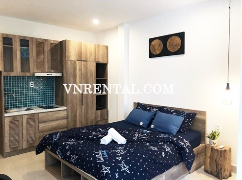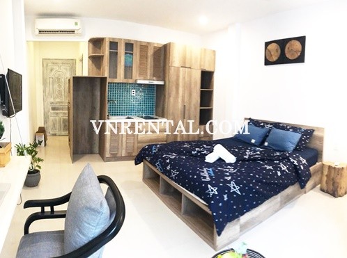 The serviced apartment for rent is located in District 1, HCMC, Vietnam, which is just 8 minutes to walk from Tan Dinh local market or Pink Church. From here you can easilly access to all kind of coffee shops, restaurants, or fashion shops by walking. This serviced apartment is fully furnished even kitchen stuffs, an ideal space for 1 person, especially there’s a very big window and a balcony for natural light.