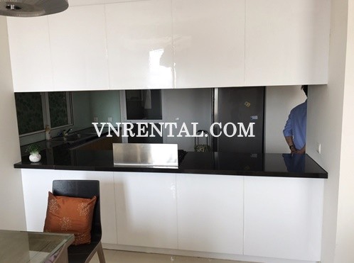 High floor and spacious modern apartment for rent in Sunrise City building, Nguyen Huu Tho street, District 7, Ho Chi Minh City, Viet Nam. The apartment for rent in Sunrise City is located in an ideal location, Saigon South is at the riverhead which can get wind from Sea East and Can Gio protective forest. In the near future, this area will be completed with office buildings, luxury shopping and entertain centers along the canal. All of those features create imposing scenery.