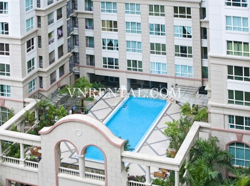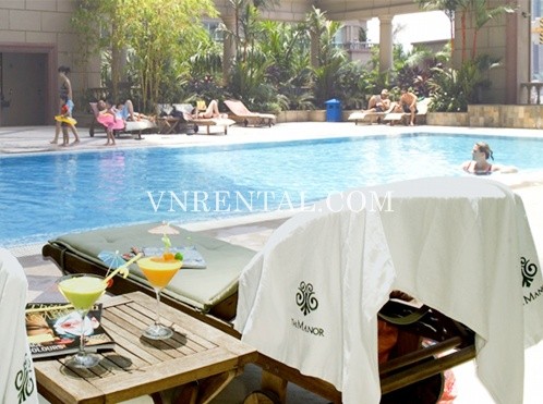 Apartment for rent in The Manor Building, Nguyen Huu Canh Street, Binh Thanh District, HCM City, Vietnam. Apartment includes 2 bedrooms, 2 bathrooms, kitchen and living room. Usable area is 101 sqm, fully furnished, great view.